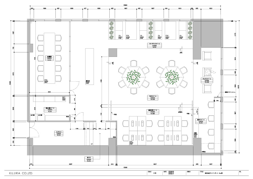 決まった席だけじゃなくて、自由に選択して使えるようなスペースがほしい。仕切りはなるべく少なくして、いつでも働いている人が見えるようなオフィスにしたい。
